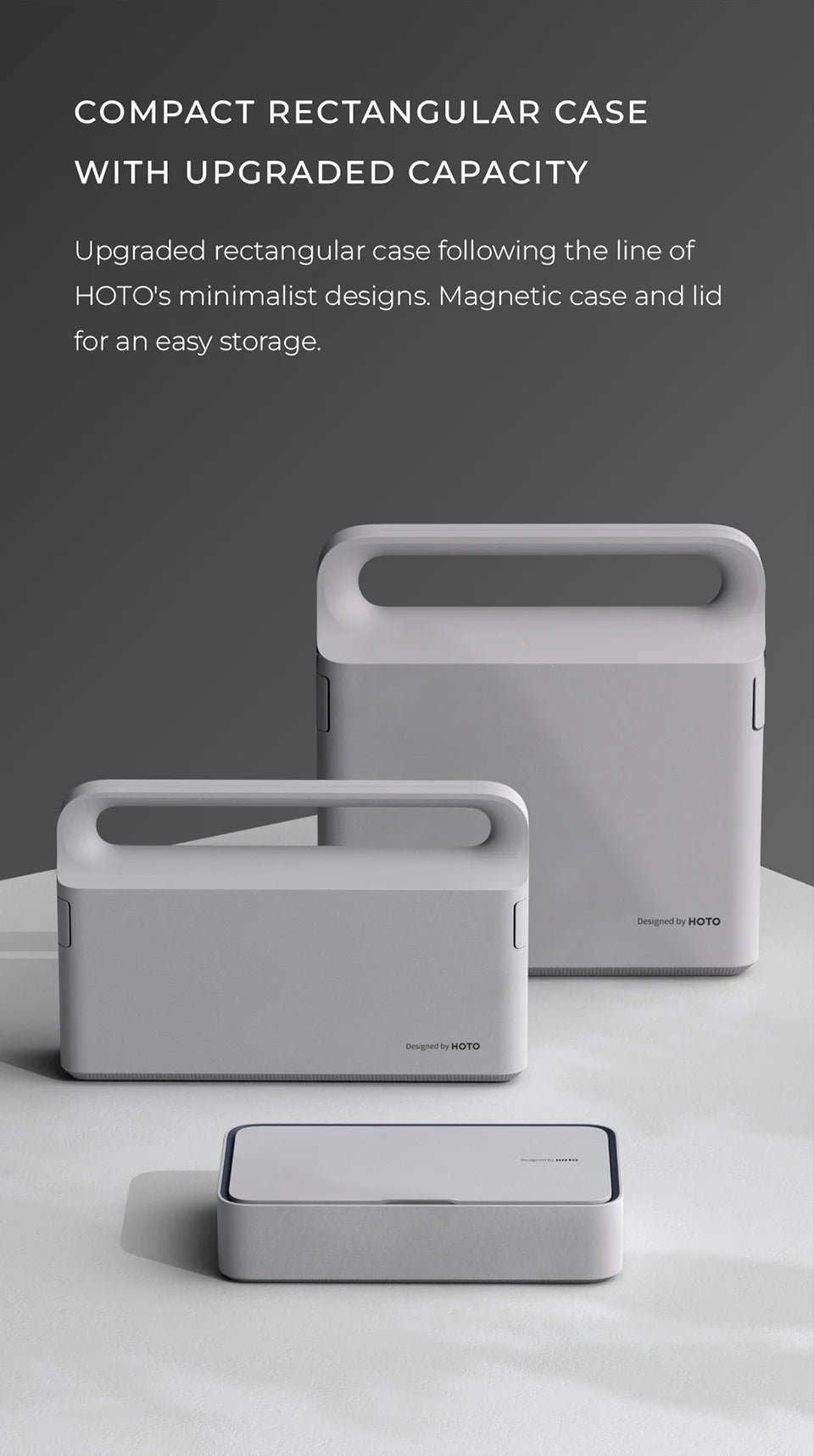 Upgraded rectangular case following the line of HOTO's minimalist designs. Magnetic case and lid for an easy storage.