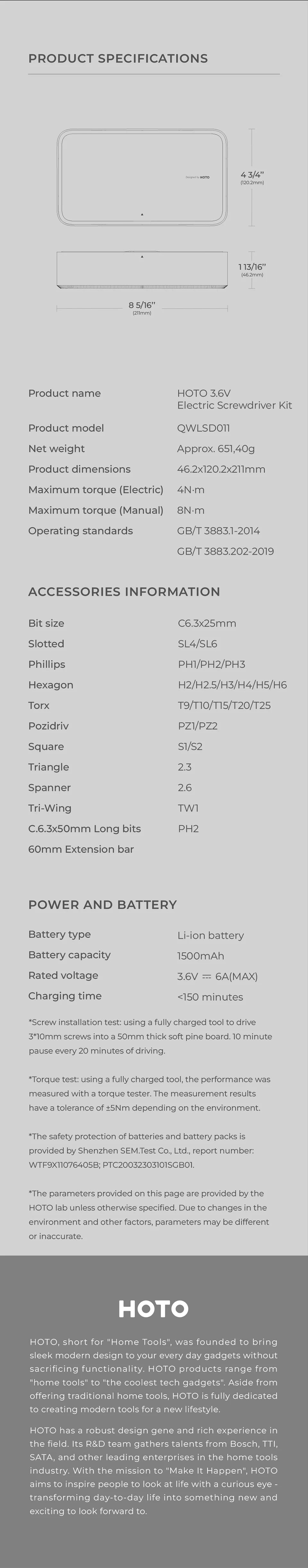 HOTO 3.6V EL ECTRIC SCREWDRIVER KIT
