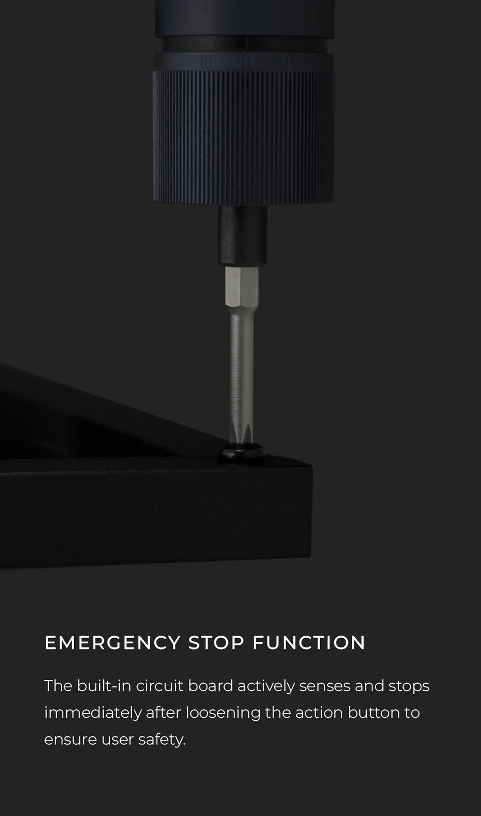 The built-in circuit board actively senses and stops immediately after loosening the action button to ensure user safety.
