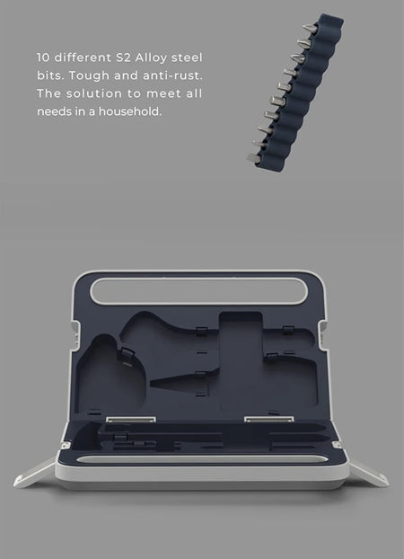 ⑥ Screwdriver bits:10 different S2 Alloy steel bits. Tough and anti-rust. The solution to meet all needs in a household.