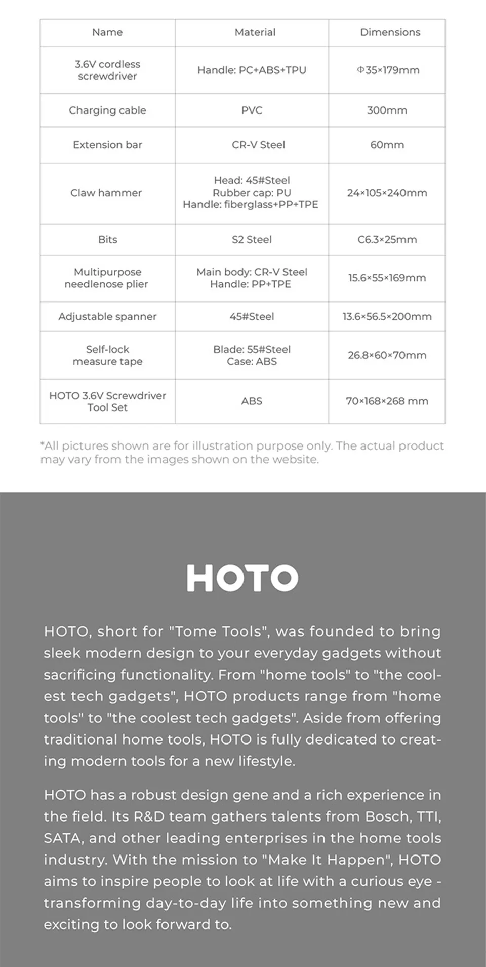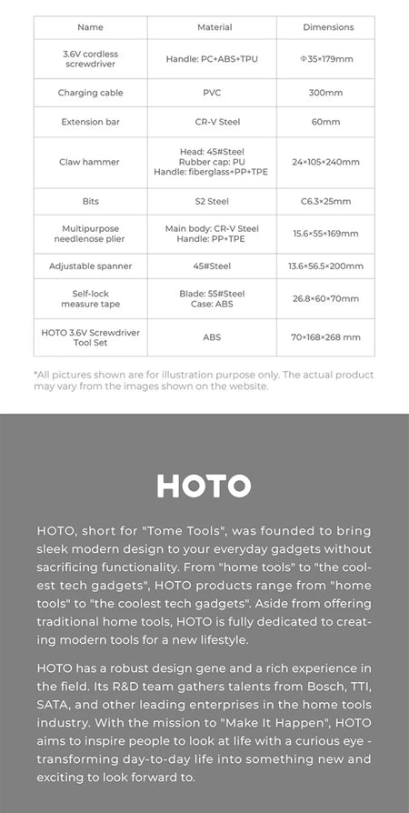 HOTO 3.6V SCREWDRIVER TOOL SET
