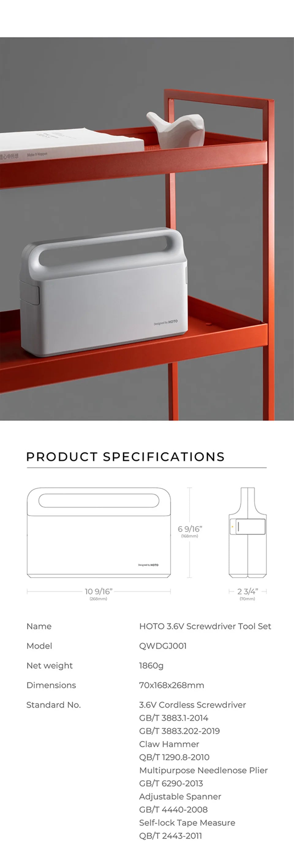 HOTO 3.6V Screwdriver Cordless Tool Set Repair Tool Kit Mechanical Tools Box for Home DIY Screwdriver Hammer Tape Measure