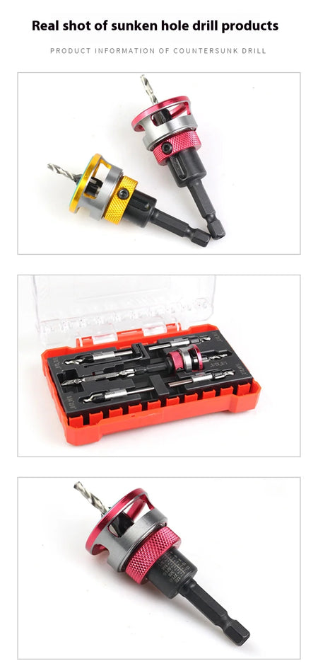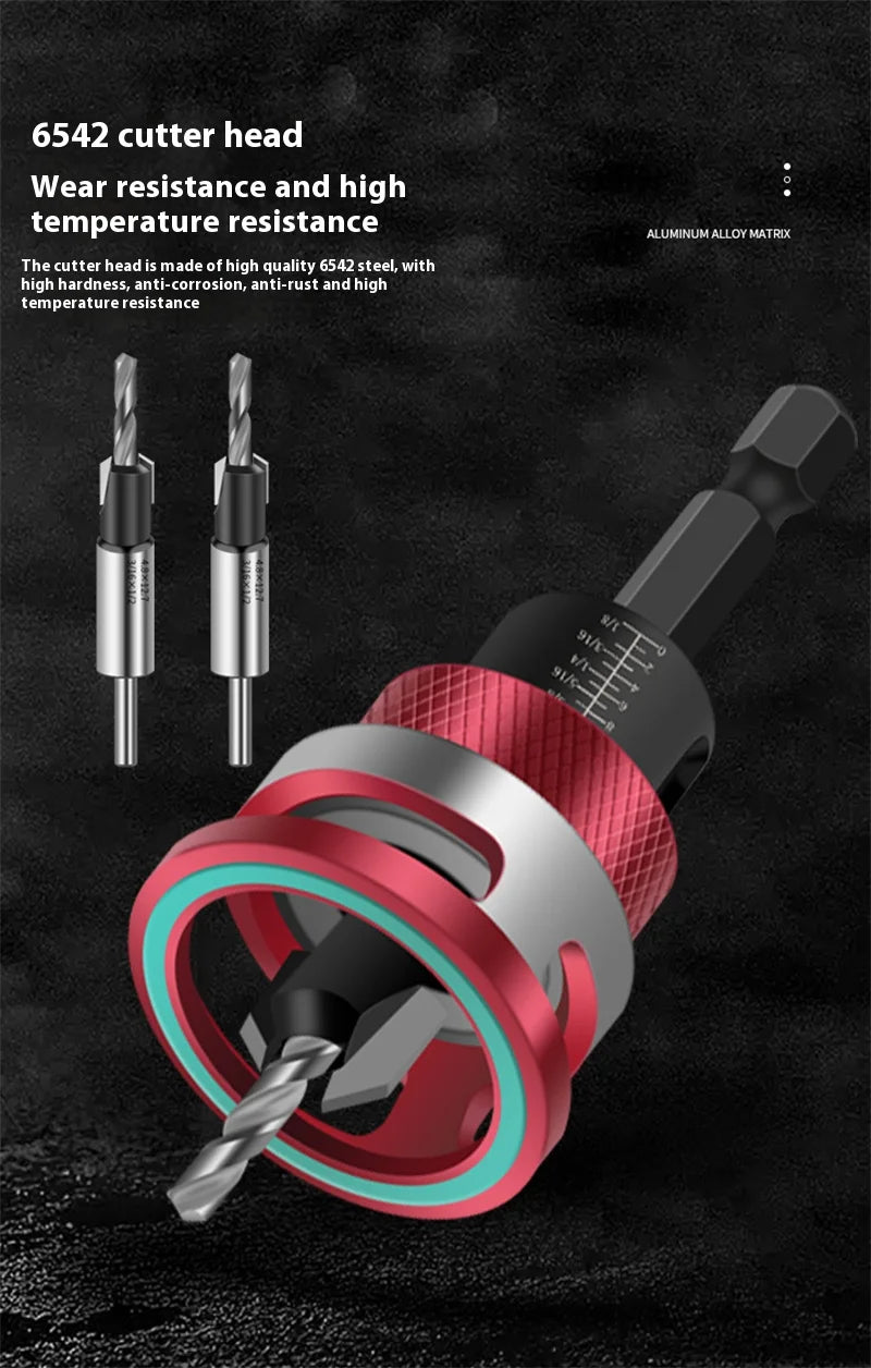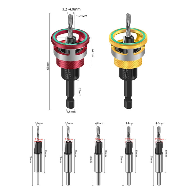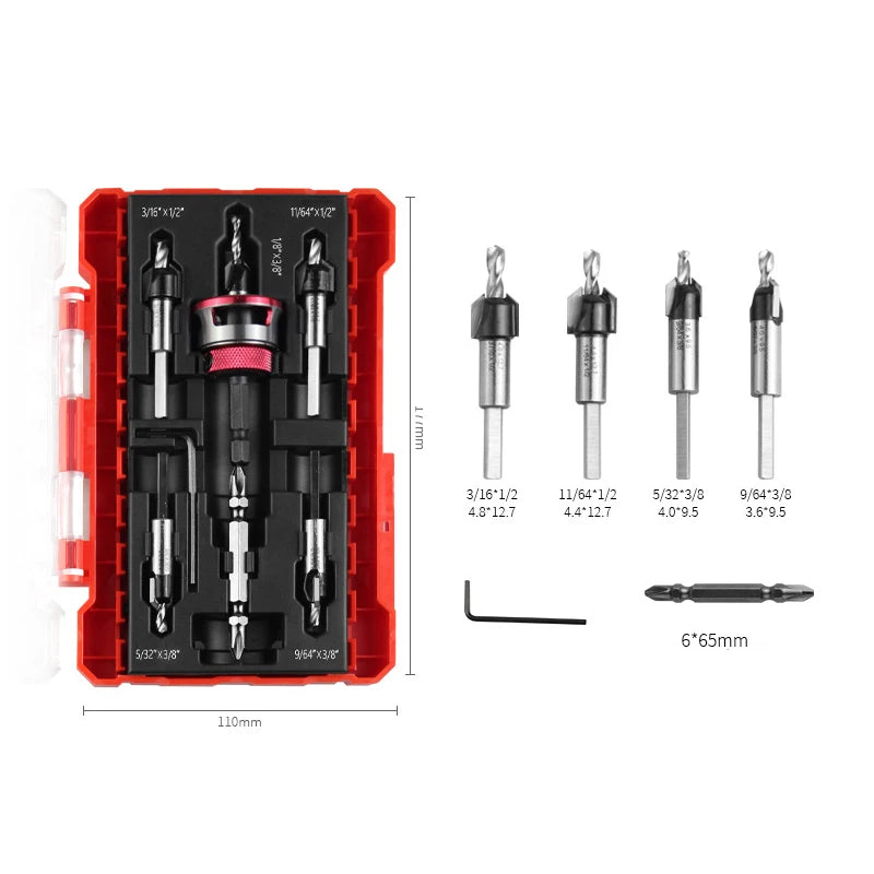 5-delers forsenkningsborsett med dybdestopp Høykvalitets stål og aluminiumslegering Multistørrelse for trebearbeidingsboring