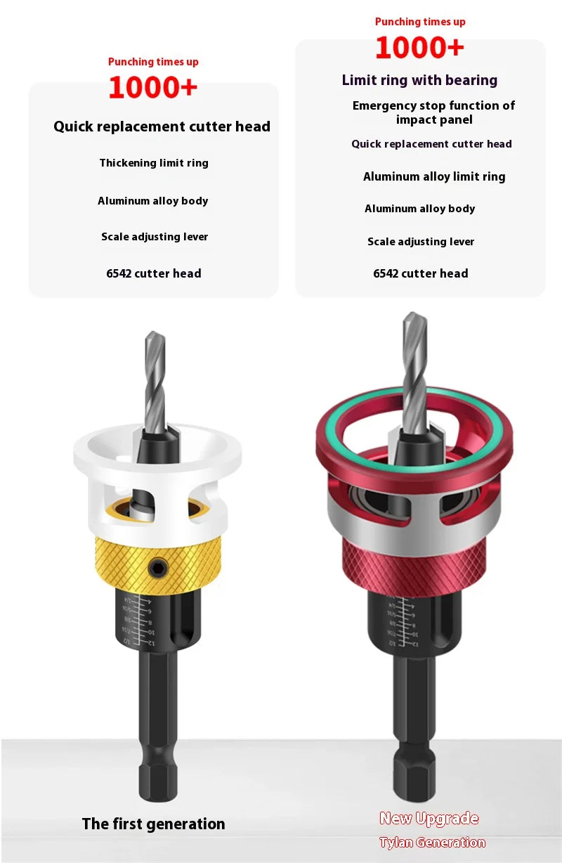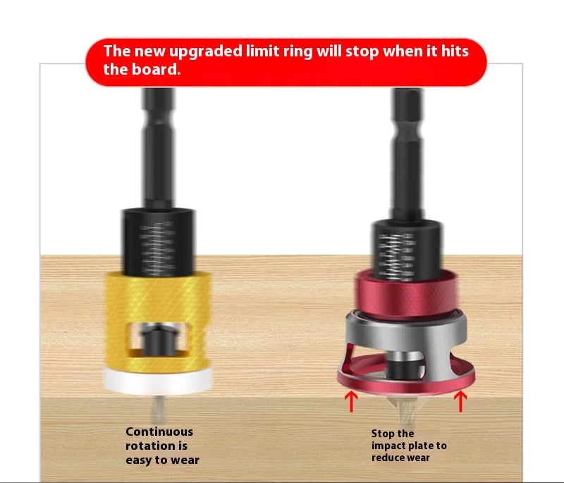 1. Innovativ dybdestoppdesign: Våre forsenkningsbor leveres med en oppgradert magnetisk dybdestoppring, som sikrer umiddelbar stopp ved berøring av treverk. Dette reduserer slitasje betydelig, og forlenger levetiden til borene.