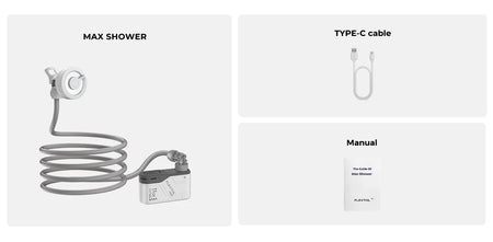 Pakkens innhold : MAX SHOWER x 1, Type-C-kabel x 1, brukerhåndbok x 1