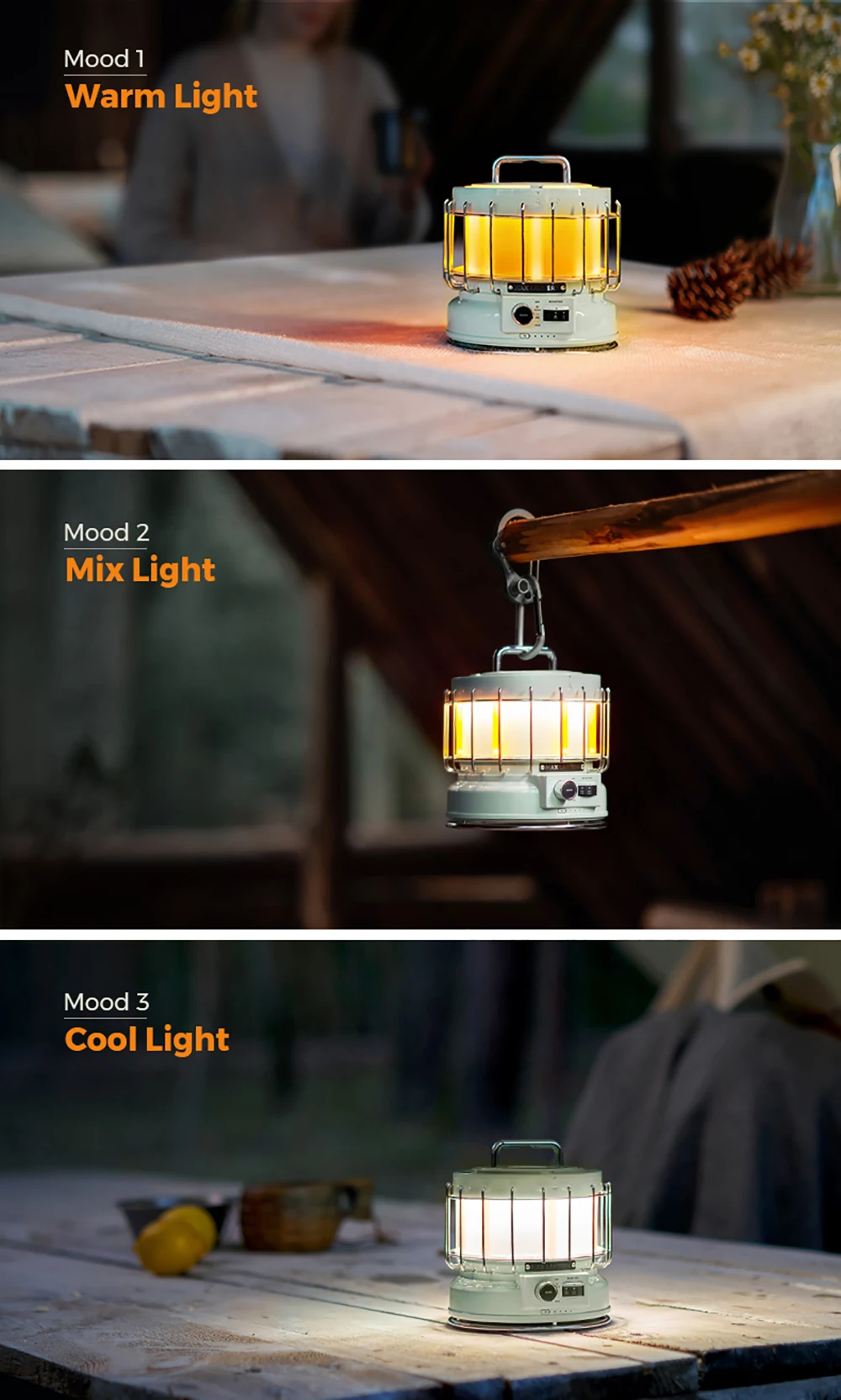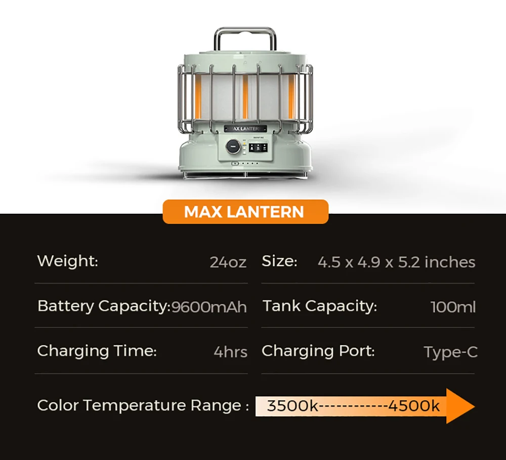 Vi introduserer MAX LANTERN, en bærbar lykt med et vintage-utseende. Med kompakt design, 3 justerbare stemningslys med dansende flamme, forstøvet luftfuktingsmodus og innebygd nødstrømforsyning, er MAX LANTERN en perfekt multifunksjonell lykt du trenger for utendørsaktiviteter eller daglig fritid.