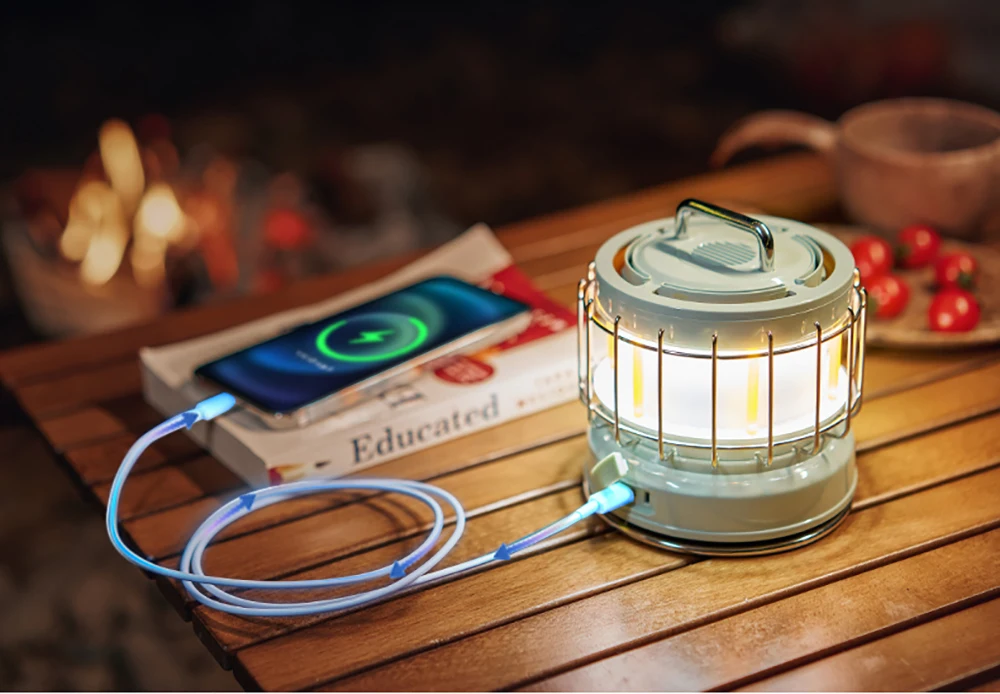 Ingen bekymringer om svakt lys eller kort varighet. MAX LANTERN har et innebygd 9600 mAh litiumbatteri med høy kapasitet, som kan vare i opptil 18 timer. Med Type-C-porter, i tillegg designet for utendørs lading via powerbank og bilen din utendørs.