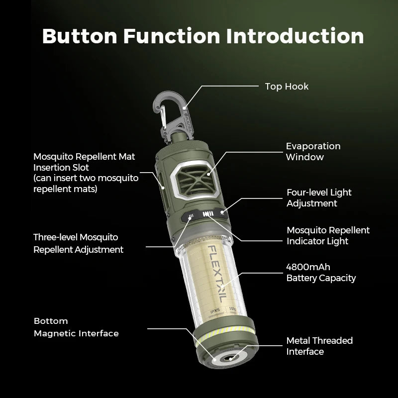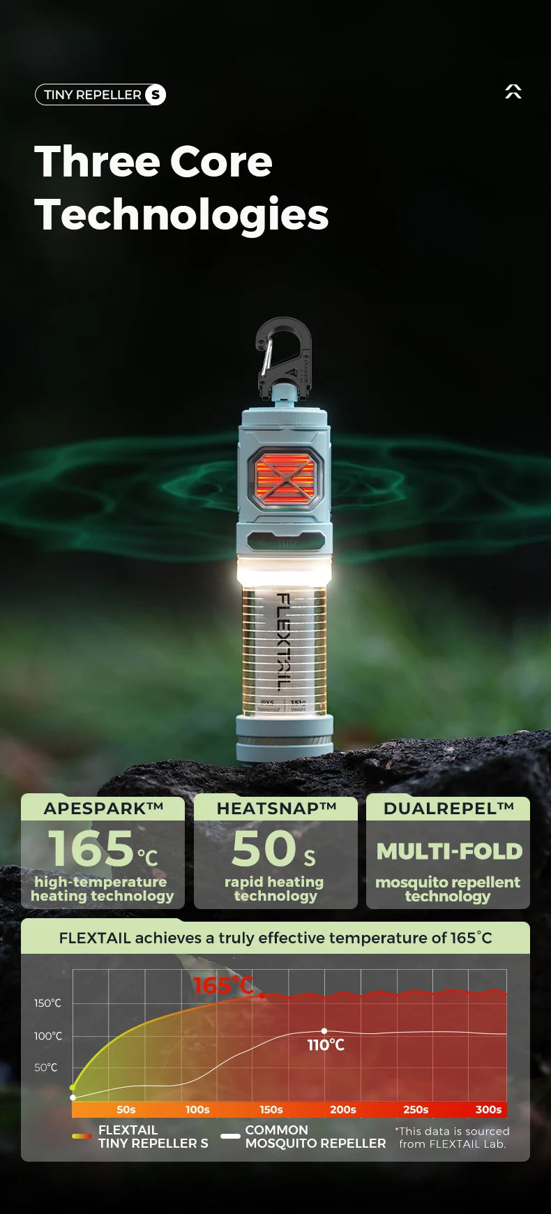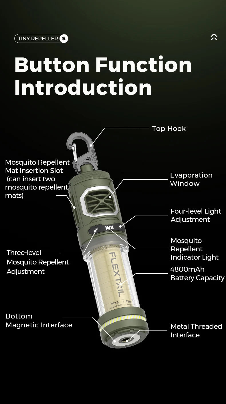 Hjem » FLEXTAIL TINY REPELLER S - Bærbar myggavviser med campinglys, oppladbar utendørs avviser for camping, fotturer og hjem
