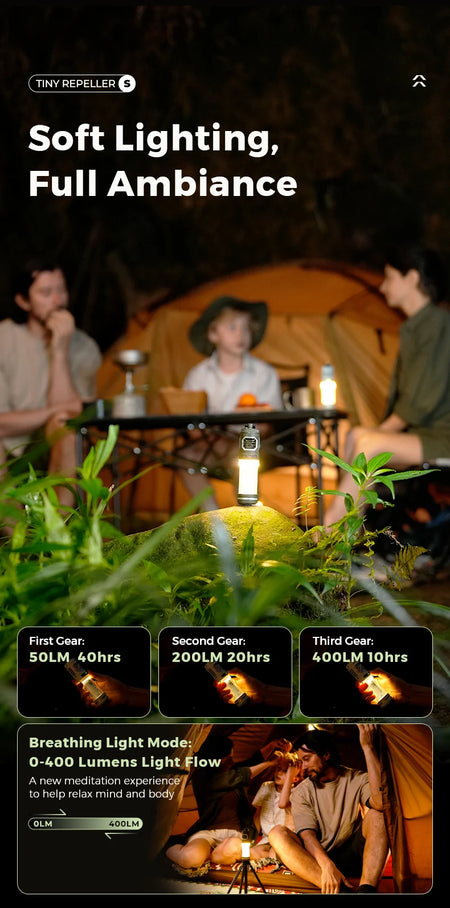FLEXTAIL TINY REPELLER S - Bærbar myggavviser med campinglys, oppladbar utendørs avviser for camping, fotturer og hjem