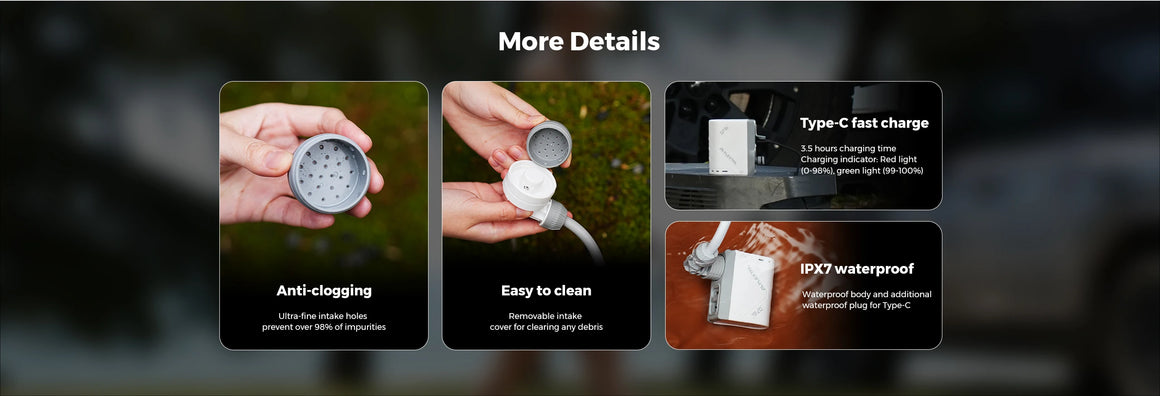 FLEXTAIL TINY SHOWER - Utendørs campingdusj Bærbar elektrisk dusjpumpe IPX7 Vanntett for utendørs og hjemmerengjøring