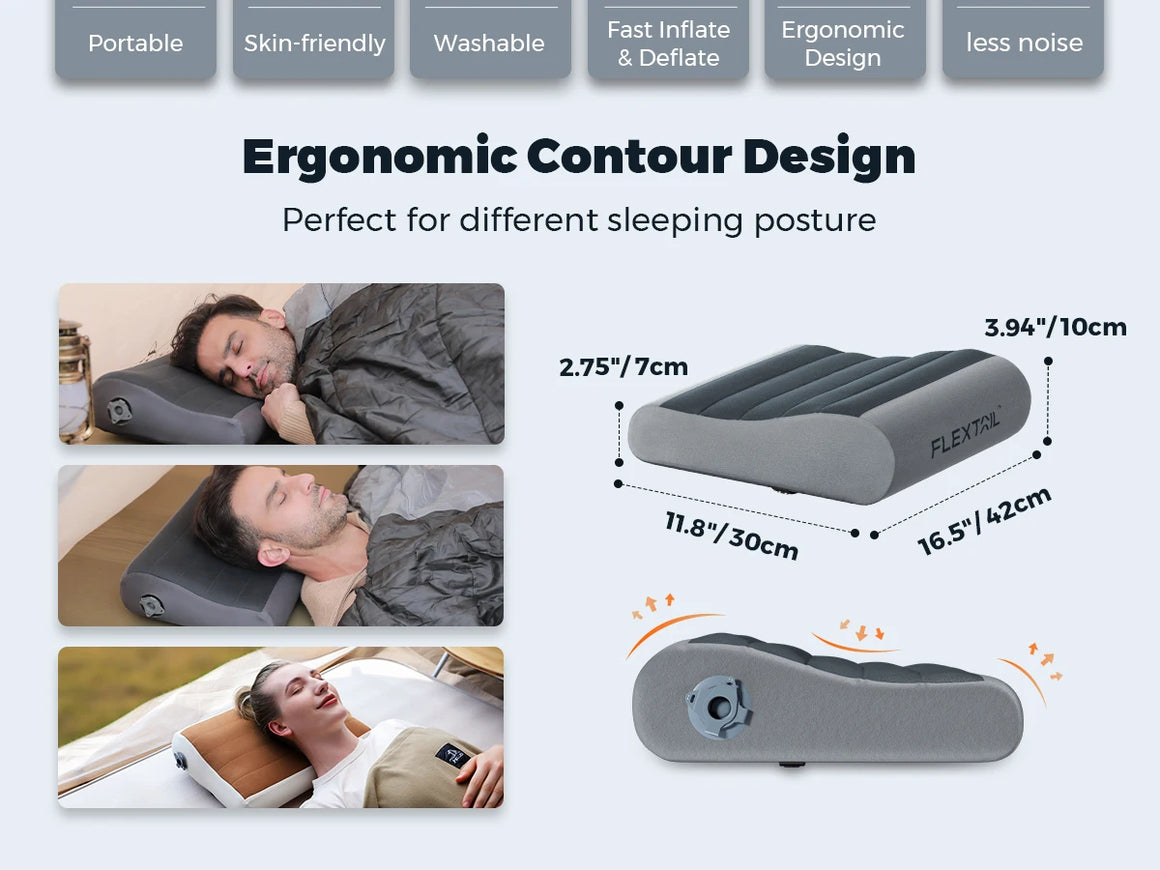 FLEXTAIL Ergonomisk Oppblåsbar Pute – Ultimat Komfort på Farten