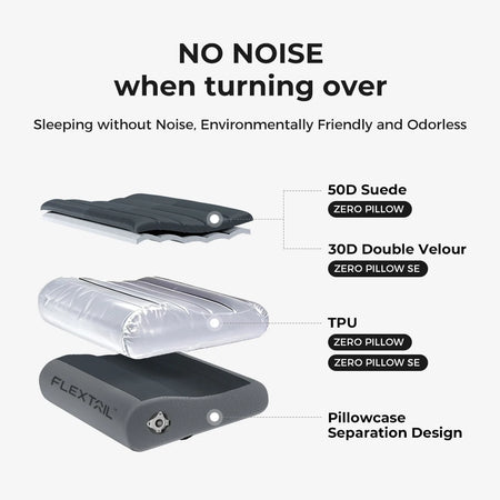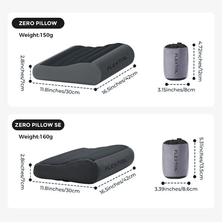 FLEXTAIL ZERO PILLOW/ ZERO PILLOW SE - Campingpute, oppblåsbar pute med elastisk stropp, ergonomisk design, to høydealternativer