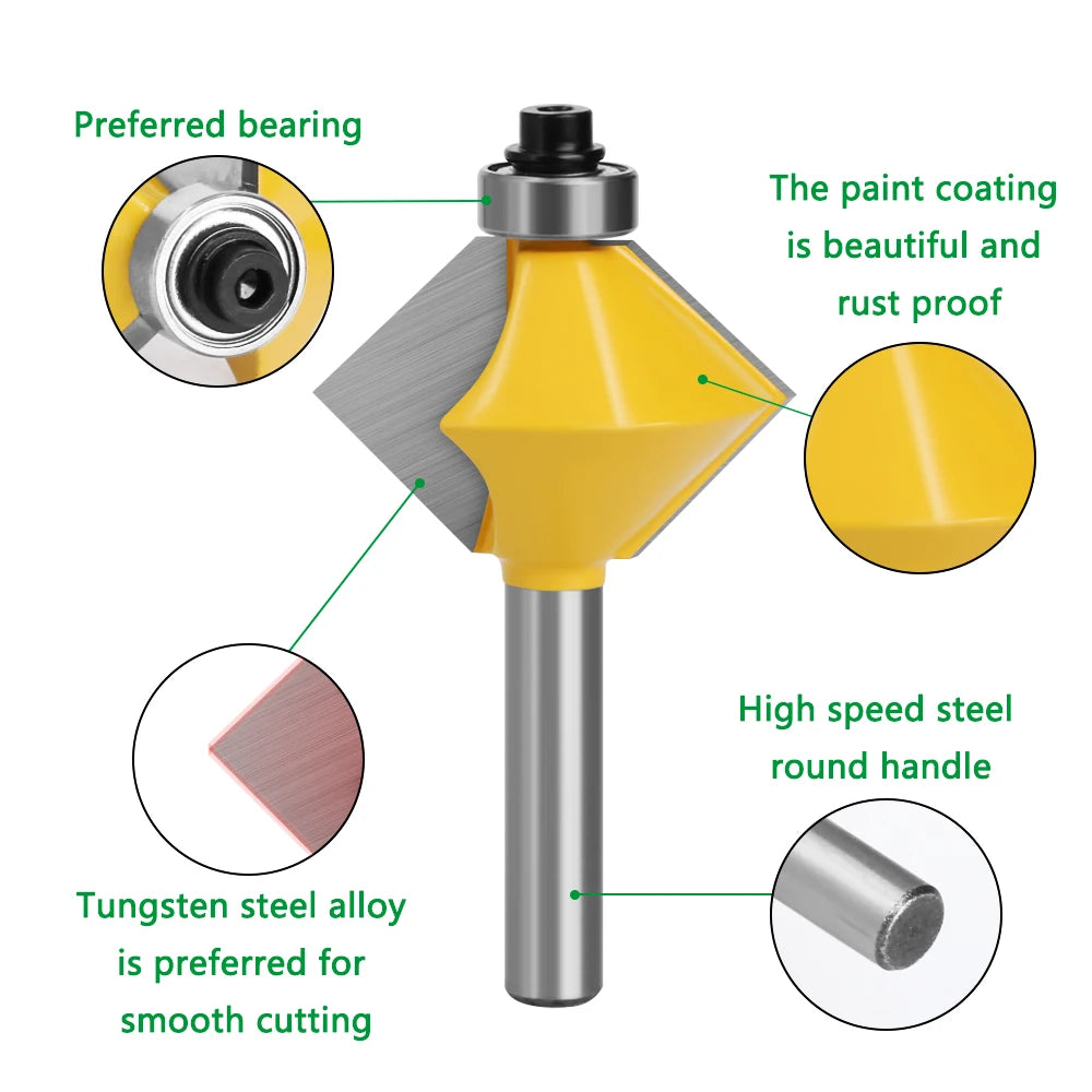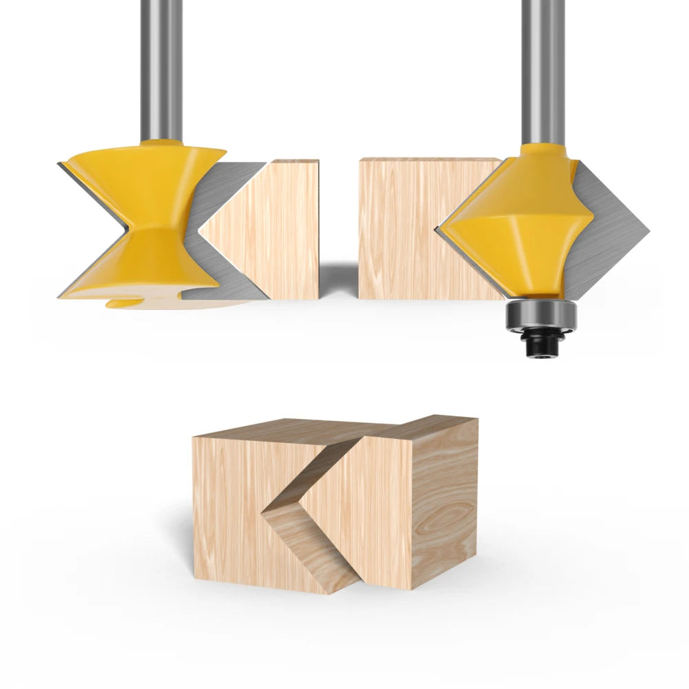 LAVIE 2-delers sett 8 mm skaft 90 graders V-design Tingue Groove kantbåndsfres sett Plateskjøting Trebearbeidingsfres