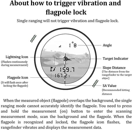2. Trykk og hold inne måleknappen (for å gå inn i skannemodus) og beveg deg sakte fra bakgrunnen mot flagget. Avstandsmåleren vil gjenkjenne flagget, og flagglogoen vil blinke og vibrere.