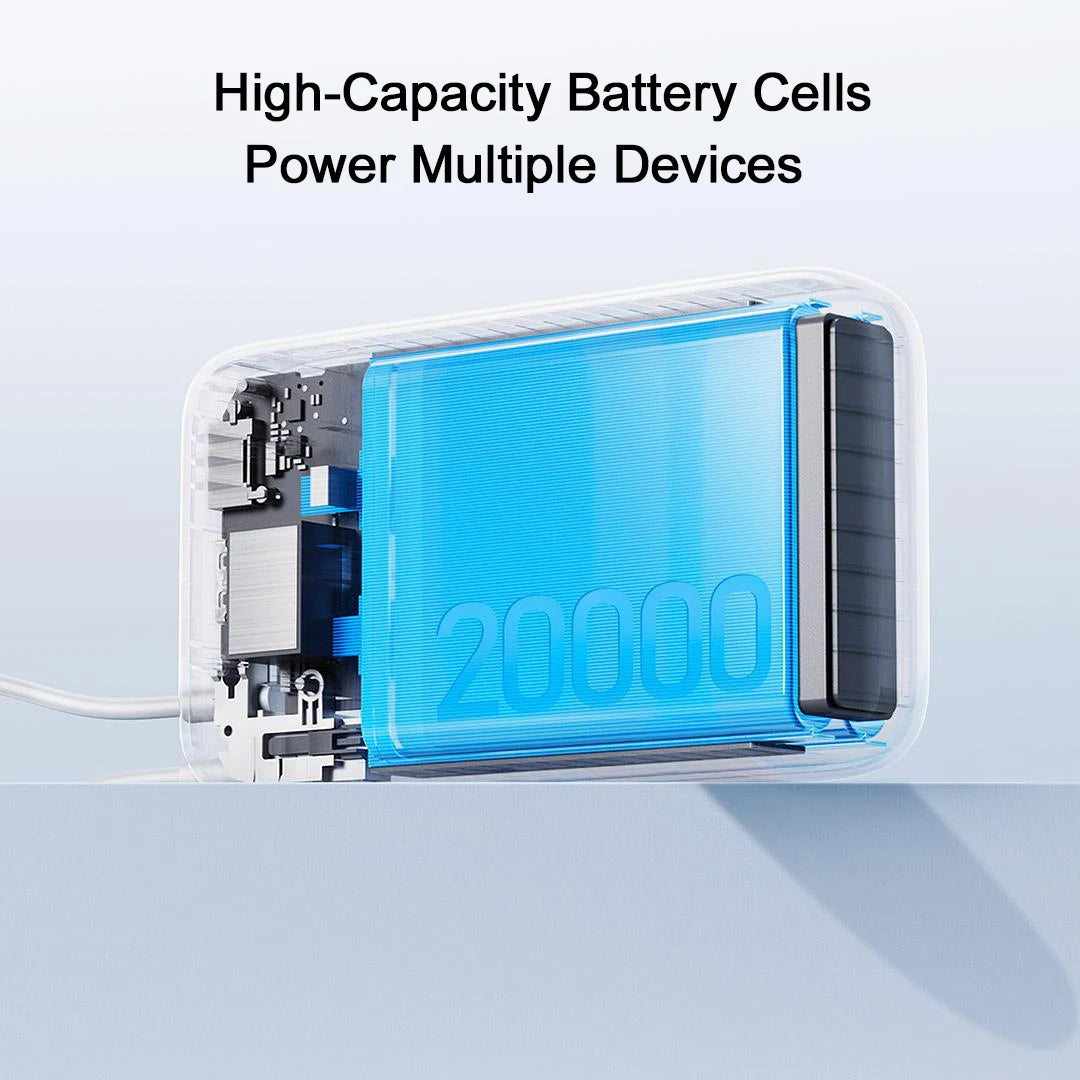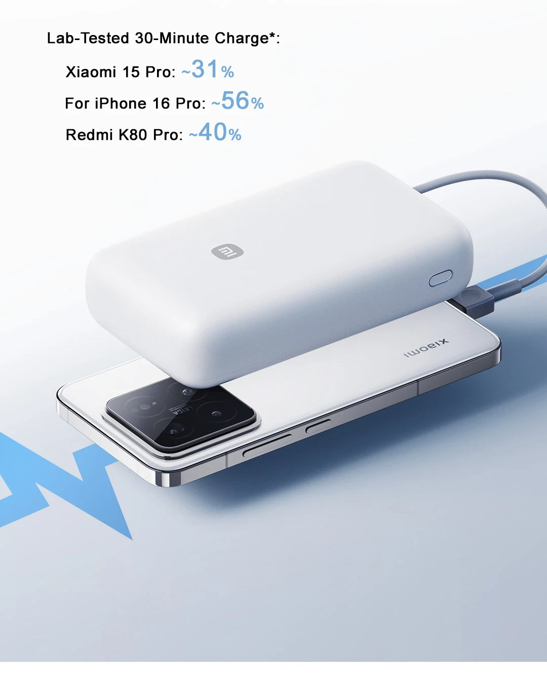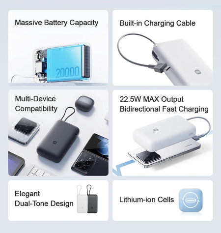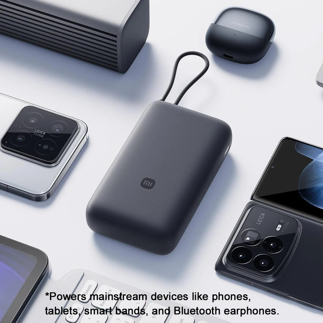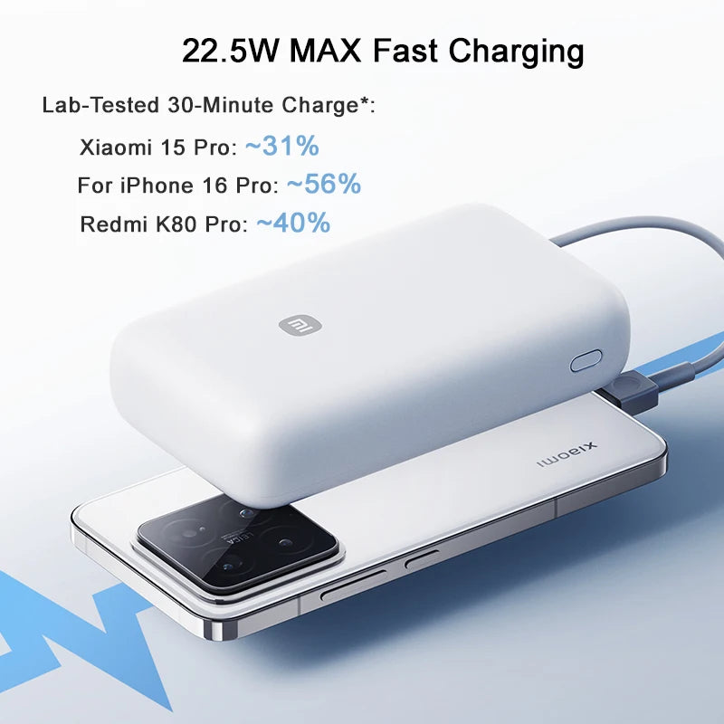 XIAOMI 20000mAh 22,5W powerbank med innebygd USB-C-kabel, 3-porters hurtiglading, dobbel inngang/utgang, for iPhone 15 16 Pro Max
