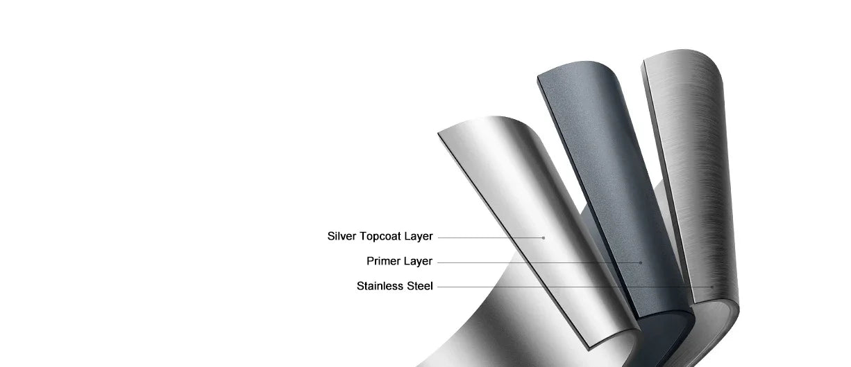 PCM-rullbelagt plateprosessfarget stålskall, lag for lag med fin sprøyting,